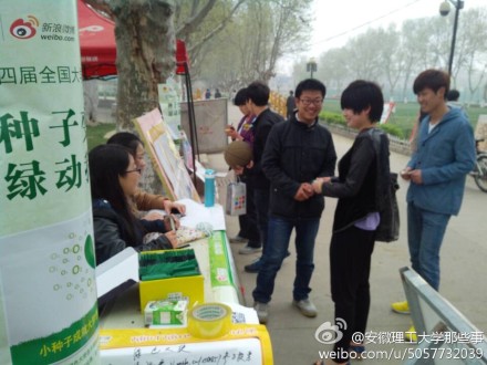 学院通过绿色管理、营造绿色氛围来正面引导学生,学生通过领种子、养绿植、光盘行动等来践行环保计划,同时我们还通过一些媒体(新浪微博、淮南电台都关注到“绿植领养”活动)、微博、微信等媒介来扩散低碳环保的正能量。“绿色”是一种生活方式,也是一种生活态度。“一切由你开始”正是环保实践的最佳宣言。我们相信,每个人的小行动可以构筑环保新势力;我们相信,雾霾会消散,蓝天会常在,愿更多的人能参与进来!